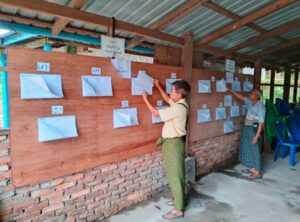 ဧရာ၀တီတိုင်းမ် ဒီဇင်ဘာ ၂၈ ရက် ဧရာ၀တီတိုင်း၊ ပုသိမ်မြို့ အမှတ် ၁၀ ရပ်ကွက်တွင် ဆယ်အိမ်မှူးများက မဲပေးနိုင်သည့် အချက်အလက်များ ပါသောကတ်ပြားများကို...