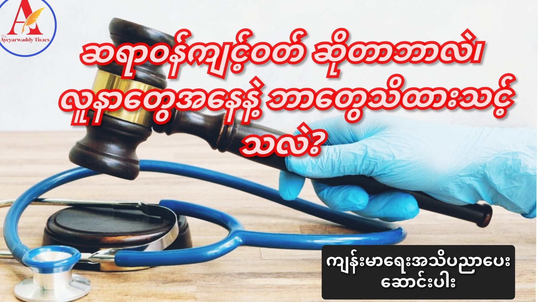 ဆရာဝန်တွေရဲ့ ကျင့်ဝတ်တွေဟာ ဥပဒေစည်းမျဉ်းတွေထက် ပိုနက်ရှိုင်းပါတယ်။ ဒါတွေဟာ ဆရာဝန် တွေရဲ့ စေတနာနဲ့ တာဝန်ယူမှုတို့ ယှဉ်တွဲပါဝင်နေတဲ့ ကိုယ်ကျင့်တရားဆိုင်ရာ စံနှုန်းတွေပဲ ဖြစ်တယ်။ လူနာတိုင်း စိတ်ချလက်ချ အားကိုးနိုင်တဲ့ ကျန်းမာရေး စောင့်ရှောက်မှုစနစ်တစ်ခု ဖြစ်တည်လာစေဖို့ ဆရာဝန်တိုင်း သိက္ခာနဲ့အညီ ဒီကျင့်ဝတ်တွေကို မြဲမြံစွာ စောင့်ထိန်းဖို့ အလွန်အရေးကြီးပါတယ်။ လူသားချင်းအပေါ်ထားရှိသော မေတ္တာနှင့် ကရုဏာကိုပါ လက်တွေ့ကျင့်သုံးပြီး မင်္ဂလာတရားနဲ့ အညီ ရှင်သန်ခြင်းက မြင့်မြတ်တဲ့အသက်မွေးဝမ်းကျောင်းခြင်းပဲဖြစ်ပါတယ်။