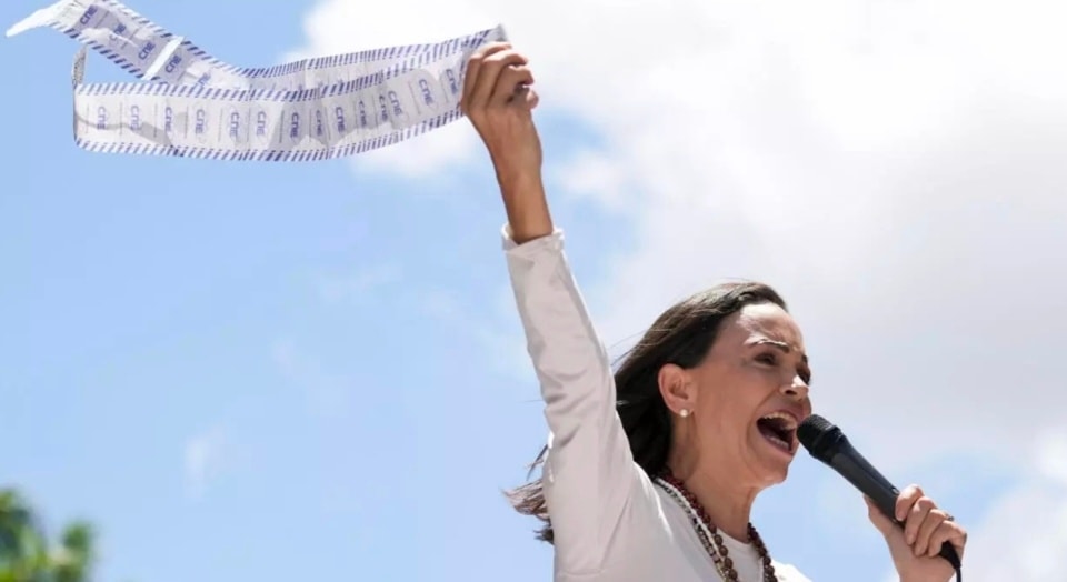 ဗင်နီဇွဲလားသမ္မတ နီကိုးလတ်မာဒူရိုက နိုဘယ်လ်ငြိမ်းချမ်းရေးဆုရှင် မာရီယာကော်ရီနာမာချာဒို အား ‘ဘီလူးသရဲစီးသော စုန်းမတစ်ဉီး’ လို့ ခေါ်ဆိုလိုက်ပါတယ်။
