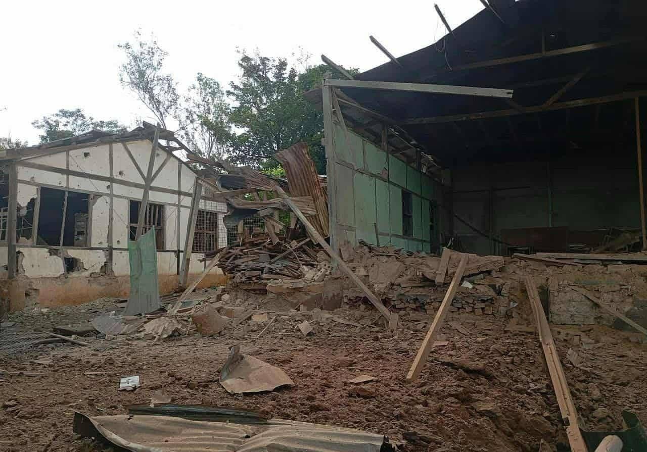 ပုံစာ – နမ္မတူမြို့ရှိ အထက (၁) စာသင်ကျောင်း ဗုံးကြဲခံရပြီးနောက် တွေ့ရစဉ်။