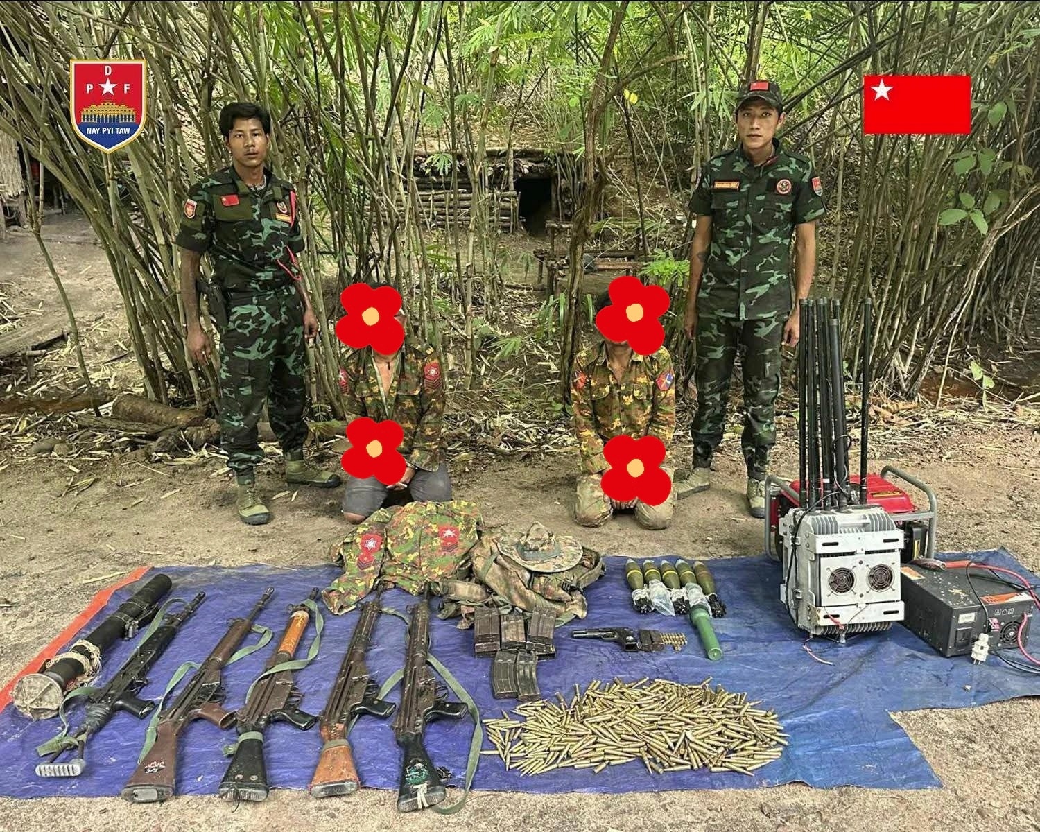 ထို့ပြင်စစ်ကော်မရှင်ထံမှ ဒရုန်းဂျမ်မာ(ရေဒီယိုလှိုင်းနှောက်စက်) အထိုင်စက်ကြီး တစ် လုံး၊ MA-11 တစ် လက်၊ MA-3 တစ် လက်၊ G-3 သုံး လက်၊ ၆၀-မမ တစ် လက်၊ ပစ္စတို တစ် လက်အပါအဝင် ကျည်မျိုးစုံနှင့် ဆက်စပ်ပစ္စည်းများကို သိမ်းဆည်းရမိခဲ့ကြောင်းလည်း သိရသည်။