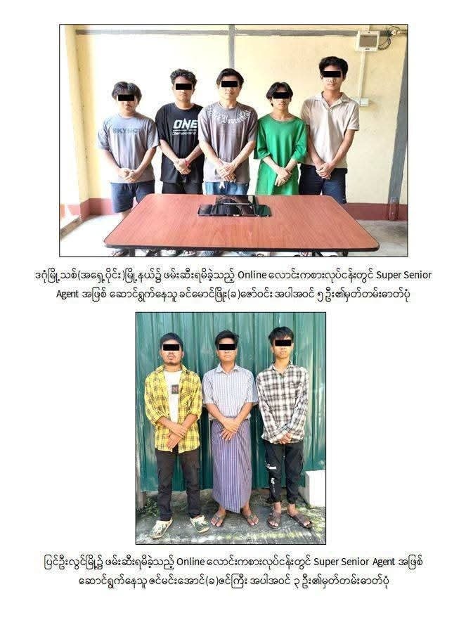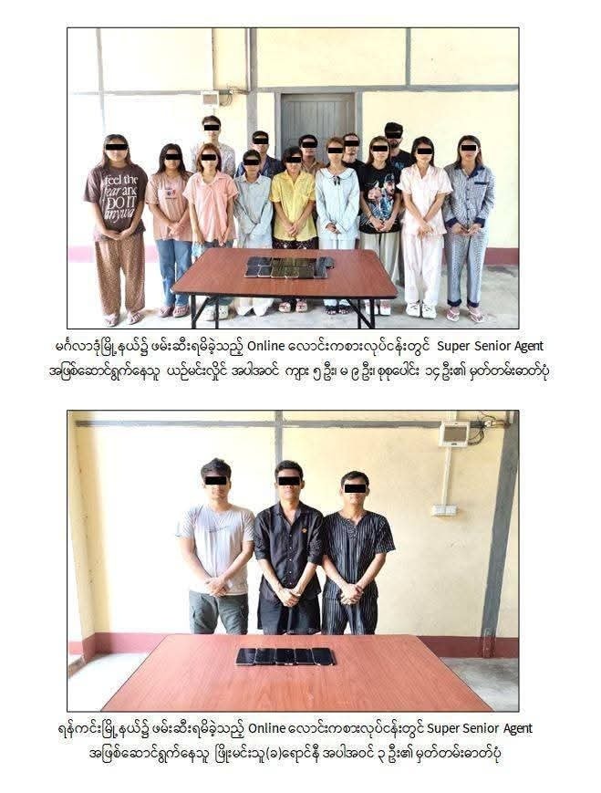 မြဝတီနယ်စပ်ရှိ အွန်လိုင်းလိမ်လည်မှုဂိုဏ်းများထွက်ပြေးနေကြပြီးနောက် ပြည်တွင်းရှိအွန်လိုင်းအလောင်းကစားဒိုင်များအပါအဝင် ငွေလဲလှယ်သူ ၂၇ ဦးကို ဖမ်းဆီးကြောင်း ယနေ့ထုတ်စစ်ကော်မရှင် သတင်းစာတွင်ထုတ်ပြန်သည်။