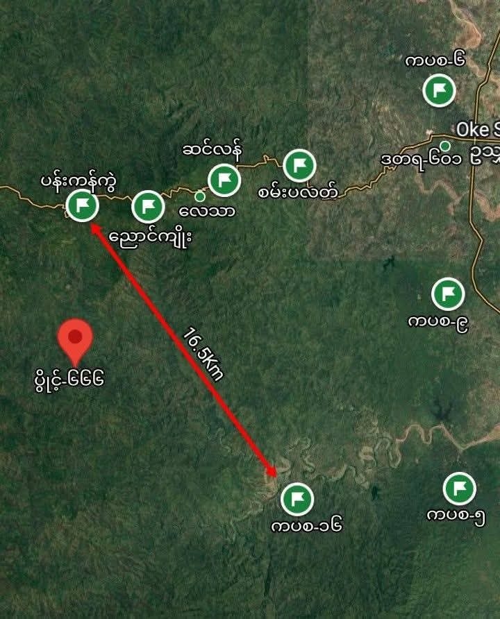 စစ်ကော်မရှင်တပ်က ပွိုင့် ၆၆၆ စခန်းမကျခင် ညောင်ကျိုးနှင့် တောင်ကုတ်လမ်းကြောင်းကို ဦးတည်တိုက်ခိုက်ပြီး လေသာတောင်ကြောကိုပါ စစ်ကြောင်း ထိုးနေခဲ့ရာမှ ယခုရက်ပိုင်းတွင် ကပစ ၁၆ ကို ကာကွယ်ရန် စစ်ကြောင်းများ ၆၆၆ ပွိုင့်ကုန်းအနီးထိ ဦးတည်လာခြင်းဖြစ်သည်။