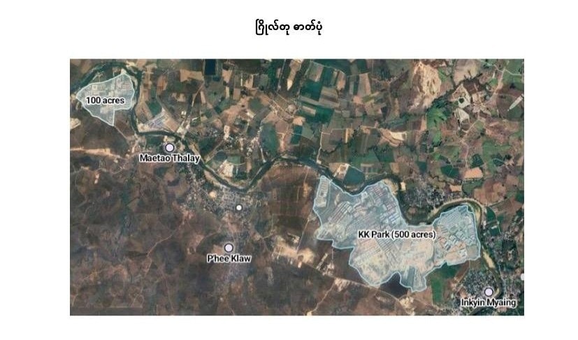 စစ်ကော်မရှင်ဘက်ကစွပ်စွဲထားသည့် ဧက ၁၀၀ မြေကွက်ကို ထိုင်းကုမ္ပဏီနှင့်ပူးပေါင်းဆောင်ရွက်ခြင်းကို ၂၀၂၂ ခုနှစ် ဒီဇင်ဘာကတည်းက ရပ်ဆိုင်းနှုတ်ခဲ့ပြီး KK Park အွန်လိုင်းငွေလိမ်လုပ်ငန်း လုပ်ကိုင်သည့် ဧက ၅၀၀ ရှိသော မြေကွက်မှာ သီးခြားစီဖြစ်ပြီး မြေကွက်တစ်ခုနှင့် တစ်ခုမှာ သုံးကီလိုမီတာ အကွာတွင် တည်ရှိသည်ဟု KNU က ပြောသည်။