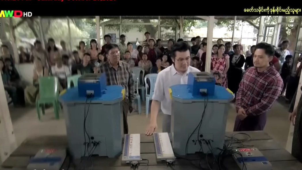 စစ်ကော်မရှင်သည် ၎င်းတို့၏ အတုအယောင် ရွေးကောက်ပွဲကို ပြည်သူများ စိတ်ဝင်စားမှုရှိလာစေရန် ရည်ရွယ်၍ အကယ်ဒမီ နေတိုး၊ မြင့်မြတ်၊ နေဝင်း၊ အေးချမ်းမောင်၊ ခြူးလေး၊ မေမြင့်မိုရ် စသည့် သရုပ်ဆောင်များကို အသုံးချကာ “ခေတ်သမိုင်းကို ဒုန်းစိုင်းမည့်သူများ” အမည်ရှိ ဝါဒဖြန့်ဇာတ်လမ်းကို ရိုက်ကူးထုတ်ဝေထားသည်။