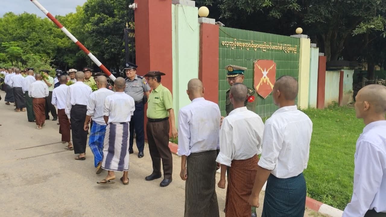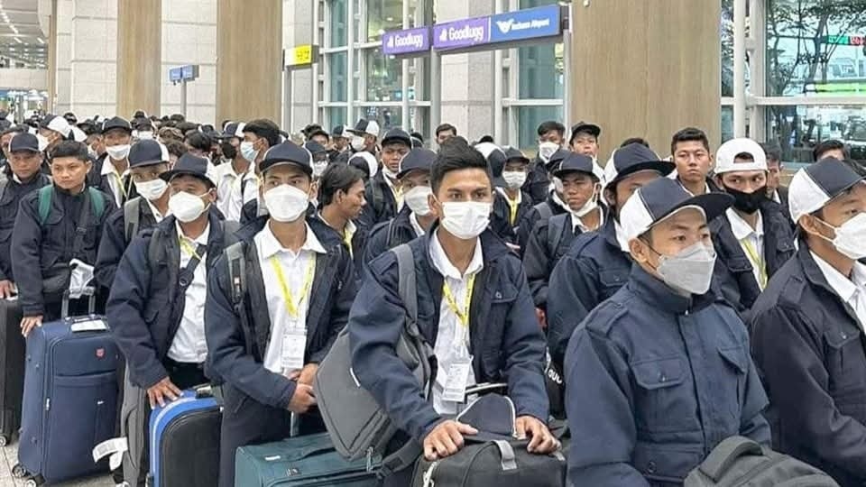 ပုံစာ-စစ်မှုထမ်းဥပဒေကြောင့် စစ်မှုထမ်းရန် အဓမ္မစုဆောင်းခြင်း ခံရသူများ၊ ပြပသို့ ထွက်ခွာမည့်မြန်မာလုပ်သားများ။