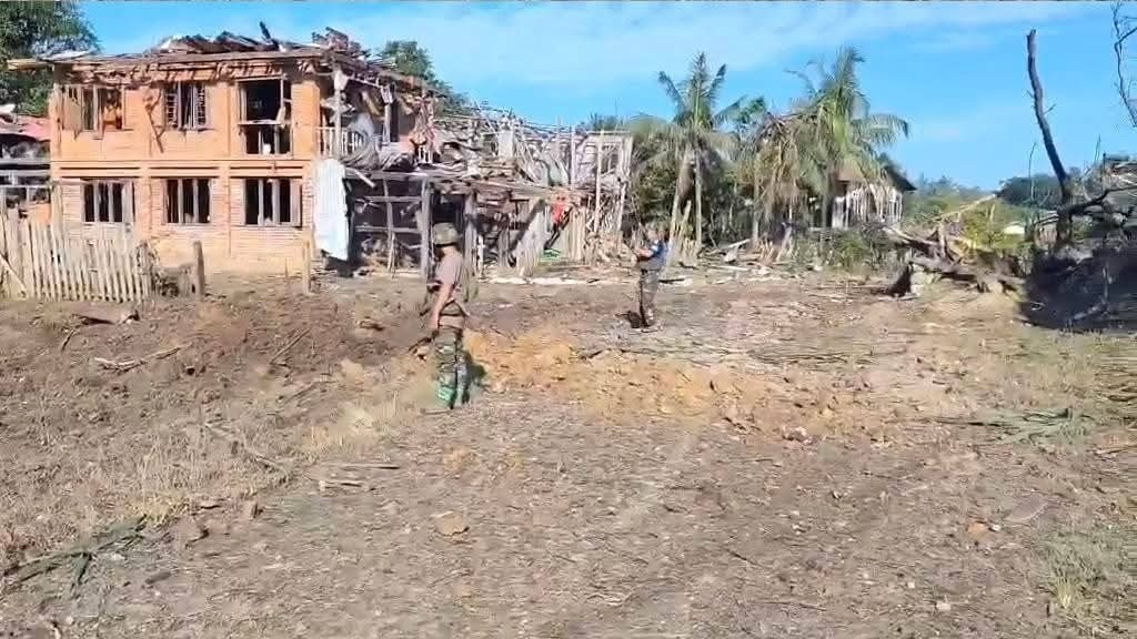 ပုံစာ- ဗုံးကြဲခံရသည့် ဗန်းမောက်မြို့ အခြေအနေ