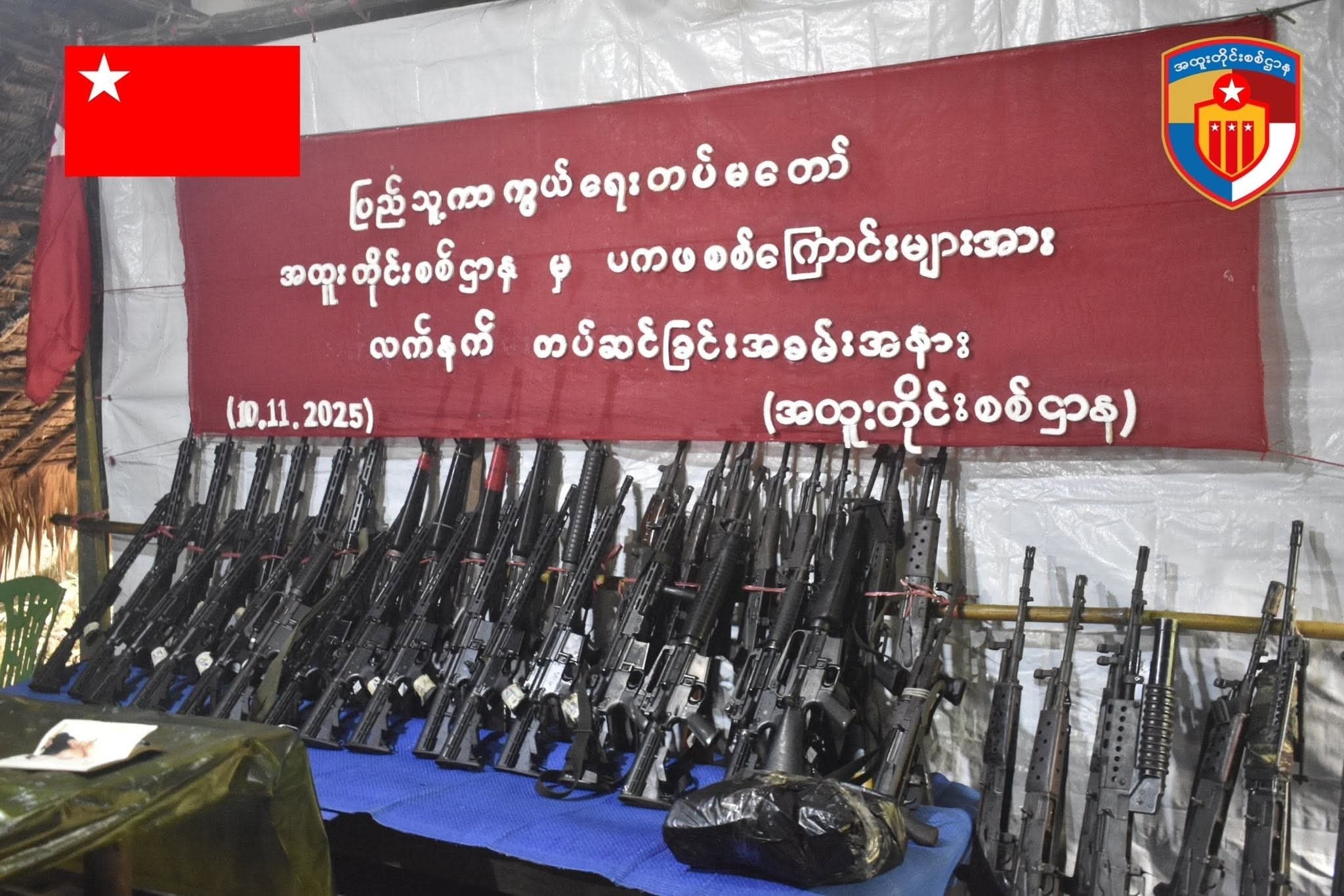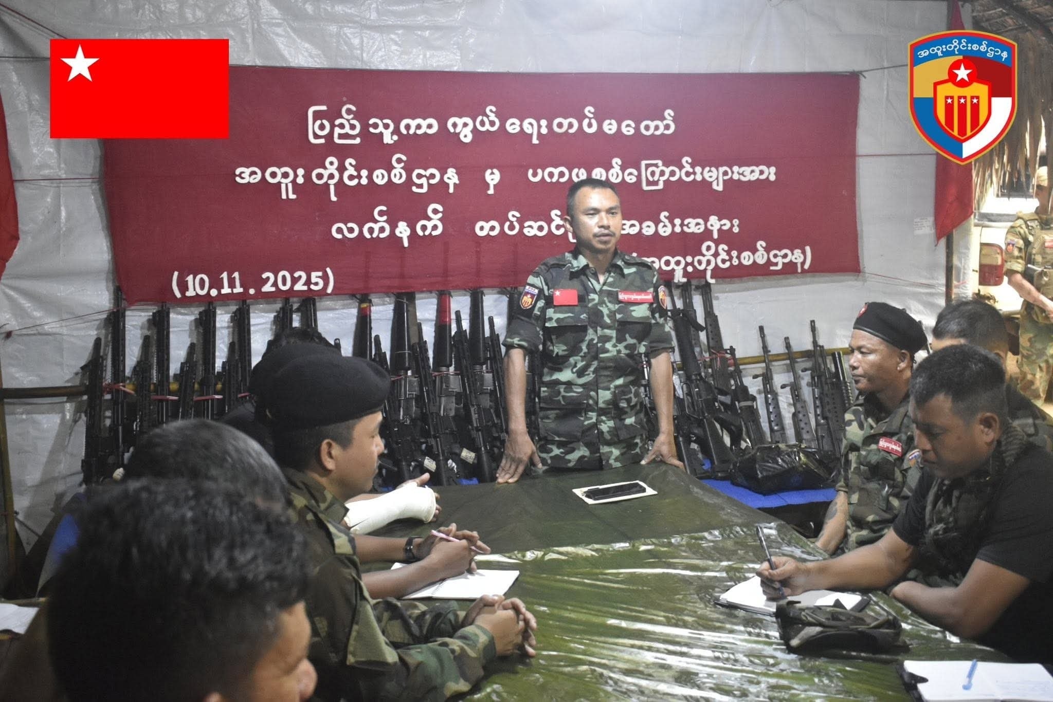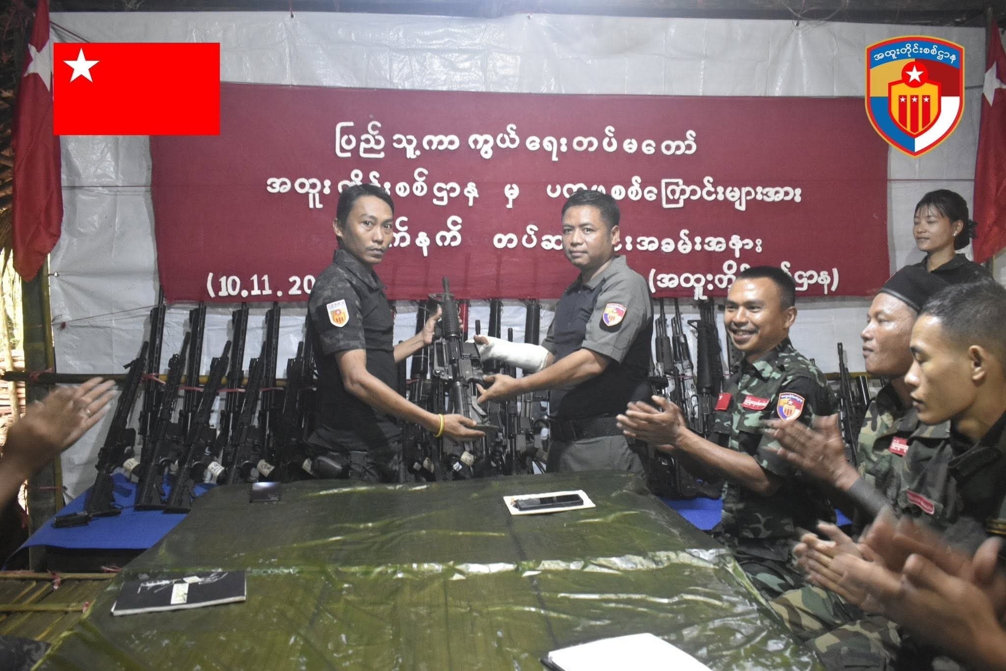 စစ်ဆင်ရေးများကို ပူးပေါင်းဆောင်ရွက်နေသည့် ရန်ကုန်တိုင်း ပကဖတိုက်ခိုက်ရေးစစ်ကြောင်း၊ မွန်ပြည်နယ် ပကဖတိုက်ခိုက်ရေးစစ်ကြောင်း နှင့် ပဲခူးခရိုင် ပကဖတိုက်ခိုက်ရေးစစ်ကြောင်းများ ကို ယနေ့ နိုဝင်ဘာ ၁၀ ရက်နေ့တွင် ပဲခူးတိုင်း ရှေ့တန်းစခန်းတစ်နေရာ၌ လက်နက်ပေးအပ်ခဲ့ခြင်းဖြစ်သည်။