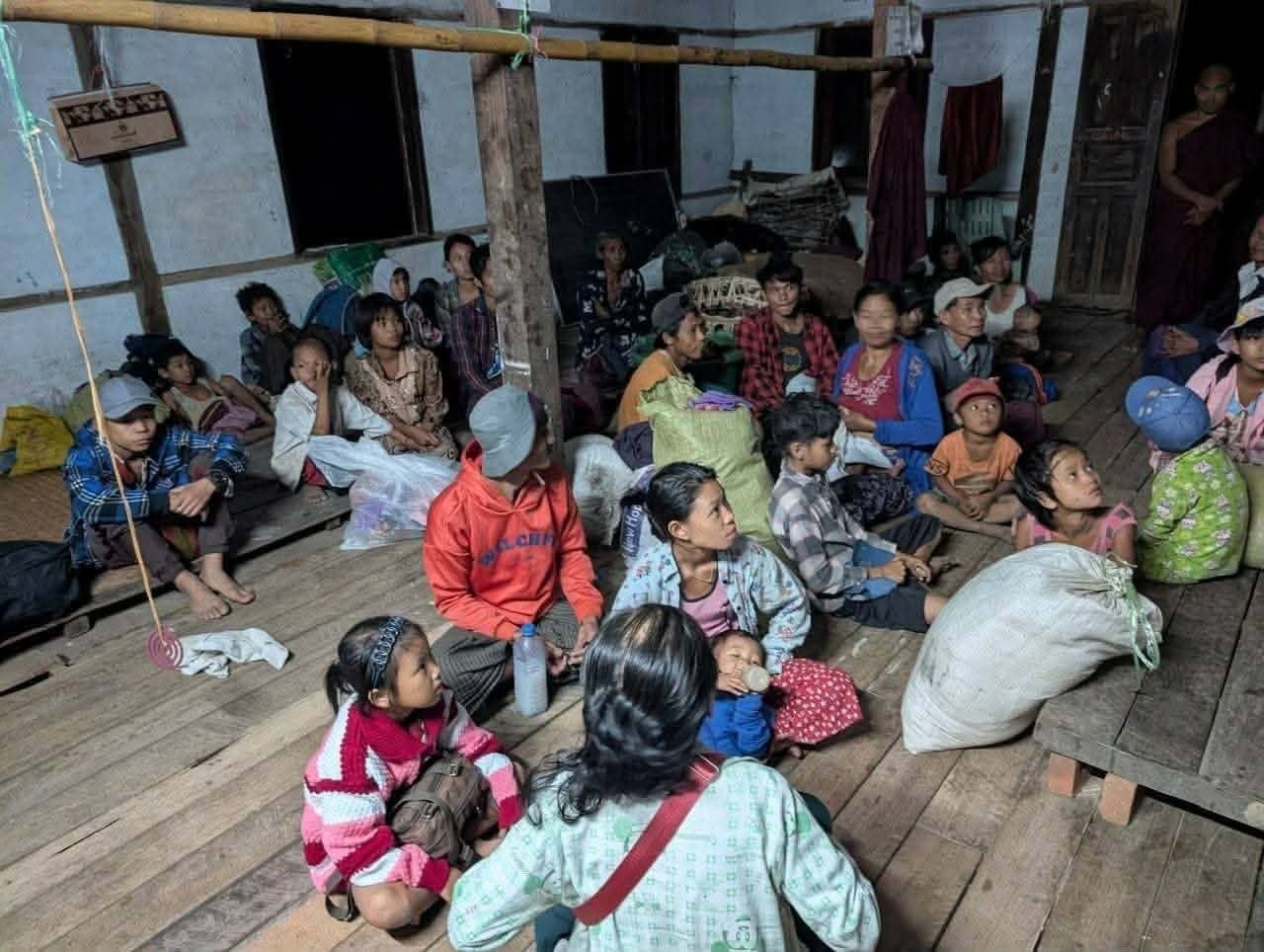 ပုံစာ-အုတ်တွင်းမြို့ရှိ ပေါက်တောကျောင်းတွင် စစ်ဘေးရှောင်နေကြသူများကို တွေ့ရစဉ်။
