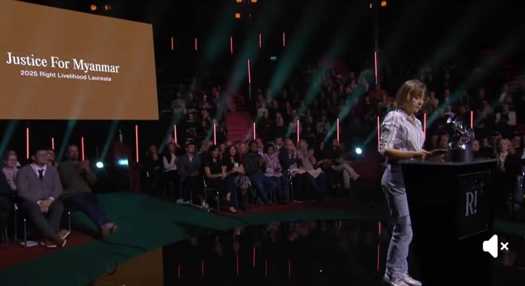 စစ်ကော်မရှင်၏ လူ့အခွင့်အရေးချိုးဖောက်မှုများအပါအဝင် စစ်အုပ်စုနှင့်ပတ်သက်သော စီးပွားရေး လုပ်ငန်းများအကြောင်း ရှာဖွေစုံစမ်းဖော်ထုတ်ပေးနေသော Justice For Myanmar (JFM) အဖွဲ့က ယခုနှစ်အတွက် ချီးမြှင့်သော The Right Livelihood ဆုကို ရရှိခဲ့ကြောင်း သိရသည်။
