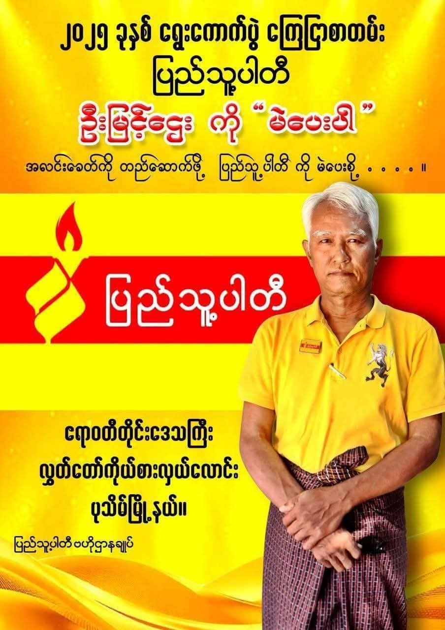ဧရာဝတီတိုင်း၊ ပုသိမ်မြို့နယ်မှ စစ်ကော်မရှင် ပြုလုပ်မည့် လူထုလက်မခံသော ရွေးကောက်ပွဲအတုတွင် ဝင်ပြိုင်မည့် (၈၈) မျိုးဆက် ကျောင်းသားခေါင်းဆောင်ဟောင်း ဦးကိုကိုကြီး ဦးဆောင်သော ပြည်သူ့ပါတီ၏ တိုင်းဒေသကြီး လွှတ်တော်ကိုယ်စားလောင်း ဦးမြင့်ဌေး သေဆုံးသွားကြောင်း သိရသည်။