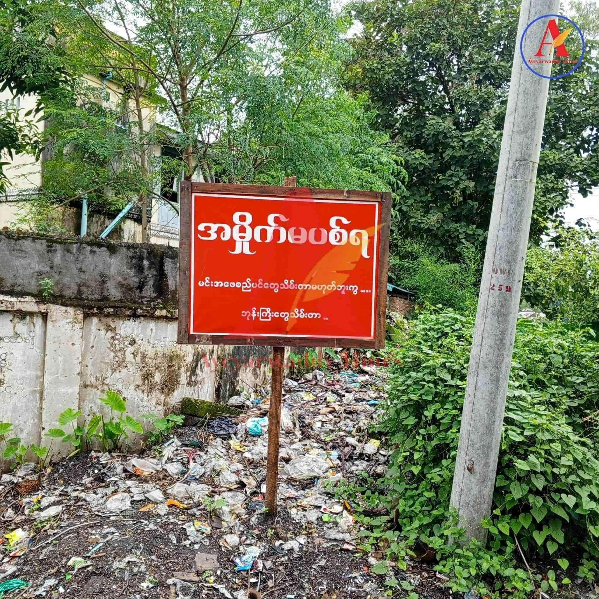 အမှိုက်ပုံများသည် လူနေရပ်ကွက်များ၊ လမ်းဆုံလမ်းခွများသာမက ဘုန်းတော်ကြီးကျောင်းနှင့် သီလရှင်ကျောင်းဝန်းကျင်များအထိ ပြည့်နှက်နေသဖြင့် “အမှိုက်မပစ်ရ၊ မင်းအဖေစည်ပင်တွေ သိမ်းတာမဟုတ်ဘူးကွ၊ ဘုန်းကြီးတွေသိမ်းတာ” ဆိုသော သရော်သည့်ဆိုင်းဘုတ်များကိုပင် စိုက်ထူ ထားသည်ကို တွေ့ရသည်။