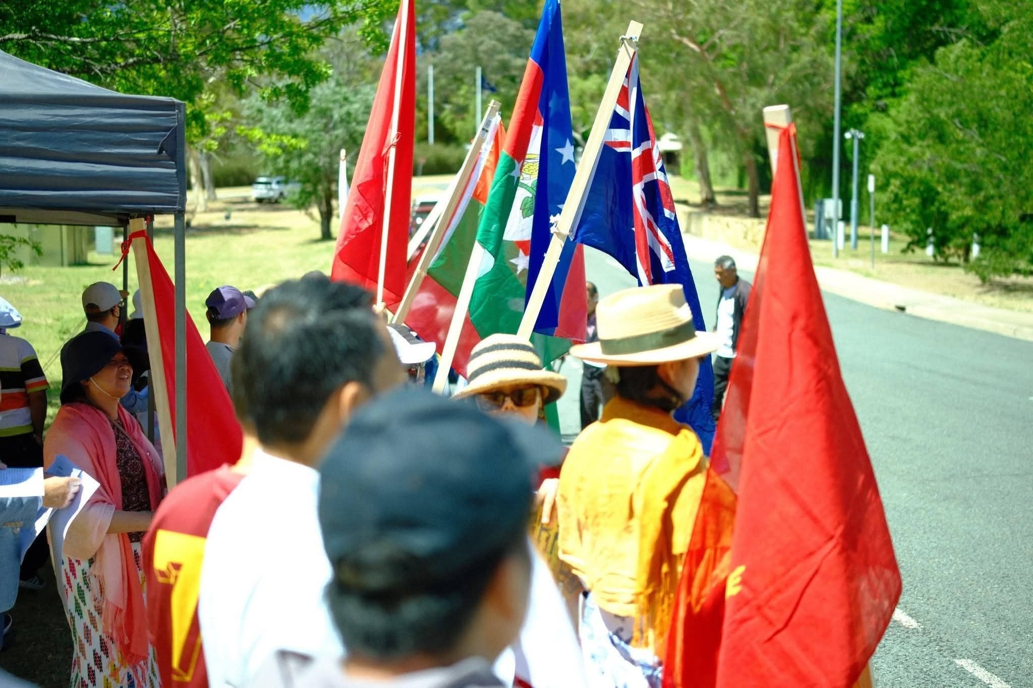 သြစတြေးလျ နိုင်ငံရောက်မြန်မာနိုင်ငံသားများသည် ယမန်နေ့က စစ်ကော်မရှင်၏ ရွေး ကောက်ပွဲကို လက်မခံဘဲ ဆန့်ကျင်ကြောင်း ကင်ဘာရာမြို့ရှိ စစ်ကော်မရှင်၏ မြန်မာသံရုံးရှေ့တွင် ဆန္ဒပြခဲ့ကြသည်။