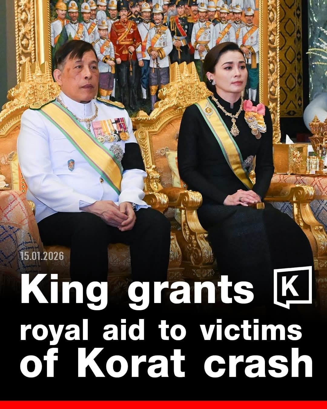 ထိုင်းနိုင်ငံ၊ နခွန်ရာချာစီမာခရိုင်တွင် ဖြစ်ပွားခဲ့သော လူသေဆုံးမှုရှိသည့် ရထားမတော်တဆမှုနှင့် ပတ်သက်၍ ထိုင်းဘုရင်နှင့် မိဖုရားတို့က စိုးရိမ်ပူပန်ကြောင်ပြောကြားခဲ့ပြီး ထိခိုက်ခံစားရသူများအတွက် ဘုရင့်ကူညီထောက်ပံ့မှုများ ပေးအပ်ခဲ့ကြောင်း သိရသည်။