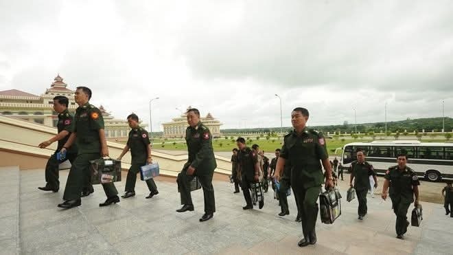 စစ်ကော်မရှင်၏ ယမန်နေ့ ဖေဖော်ဝါရီ ၈ ရက်အထိ ထုတ်ပြန်ထားသည့် တပ်ကိုယ်စားလှယ်များ စာရင်း၌ လွှတ်တော်အစုအဖွဲ့ ခေါင်းဆောင်များအဖြစ် အလုပ်သင်ဗိုလ်(တေဇ)ဆင်း ဗိုလ်ချုပ်အဆင့် စစ်အရာရှိ (၂) ဦးကို တာဝန်ပေးထားကြောင်း မြန်မာ့စစ်ဘက်ရေးရာနှင့် လုံခြုံရေးဆိုင်ရာ လေ့လာရေးအဖွဲ့ (MDSI)ထံက သိရသည်။