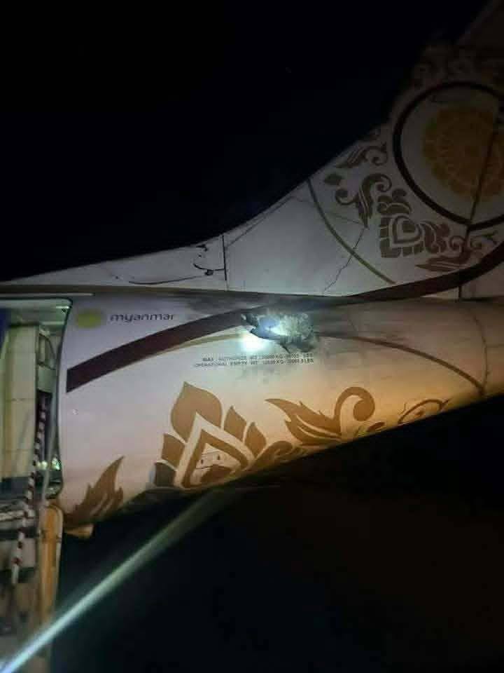 ကချင်ပြည်နယ်၊ မြစ်ကြီးနားလေဆိပ်အတွင်း ဒရုန်းတစ်စင်းပစ်ချခံရပြီး မြန်မာအမျိုးသားလေကြောင်းလိုင်း (MNA) လေကြောင်းလိုင်းမှလေယာဉ်တစ်စီး၏အမြီးပိုင်းထိမှန်ခဲ့ကြောင်း သိရသည်။