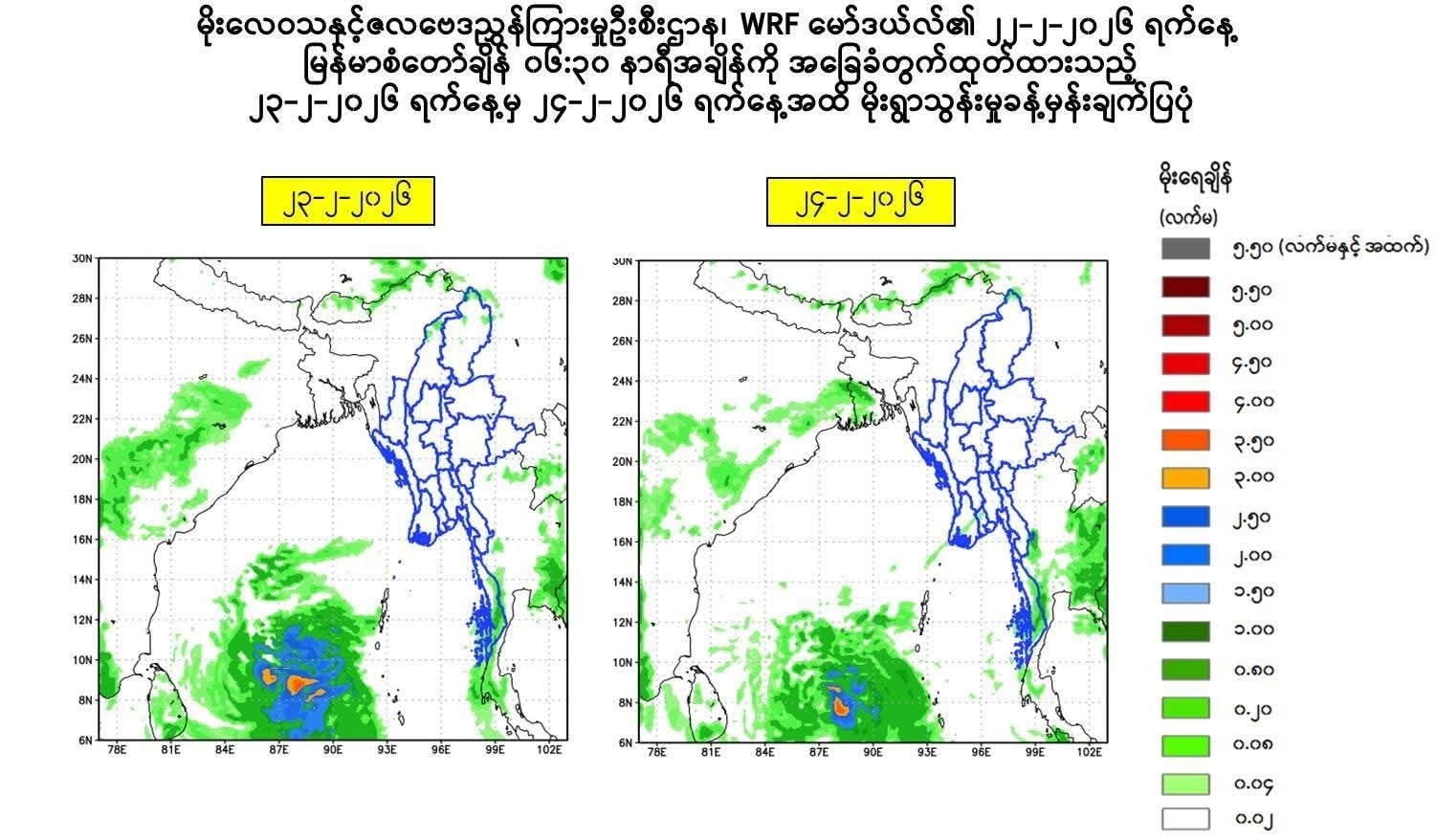 ဘင်္ဂလားပင်လယ်အော် အနောက်တောင်ပိုင်းတွင် ဖြစ်ပေါ်နေသော အားကောင်းသော လေဖိအားနည်း ရပ်ဝန်းသည် အလယ်ပိုင်းသို့ ရောက်ရှိချိန်တွင် လေဖိအားနည်းဝန်းအဖြစ် အားလျော့သွားနိုင်ကြောင်း ခန့်မှန်းထားသည်။