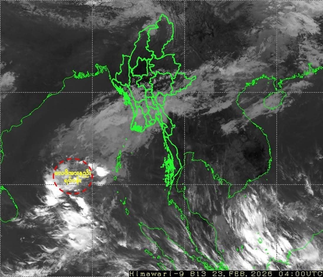 ဘင်္ဂလားပင်လယ်အော်တွင် ဖြစ်ပေါ်နေသည့် လေဖိအားနည်းရပ်ဝန်းအရှိန်ကြောင့် ယနေ့ ဖေဖော်ဝါရီ ၂၃ ရက်မှ ၂၆ ရက်အတွင်း ရန်ကုန်အပါအဝင် တိုင်းနှင့် ပြည်နယ်အချို့တွင် အချိန်အခါမဟုတ် မိုးထစ်ချုန်းရွာနိုင်ကြောင်း စစ်ကော်မရှင်လက်အောက်ခံ မိုးလေဝသနှင့် ဇလဗေဒညွှန်ကြားမှုဦးစီးဌာန (မိုး/ဇလ) က ထုတ်ပြန်သည်။