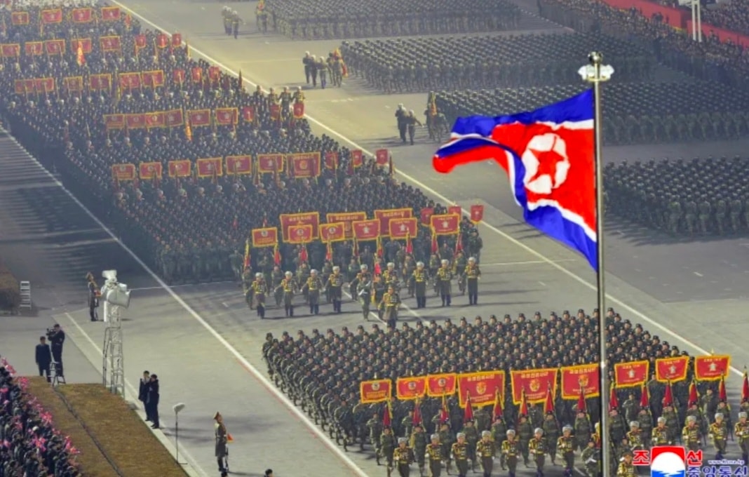 မြောက်ကိုရီးယားက ထုတ်ပြန်တဲ့ ဓာတ်ပုံတွေထဲမှာ စစ်သားတွေဟာ မီးထွန်းညှိထားတဲ့ ကင်အီ ဆွန်းရင်ပြင်ထဲမှာ စစ်ကြောင်းထိုး ချီတက်နေကြတာကို တွေ့ရပြီး စင်မြင့်ပေါ်မှာတော့ ခေါင်းဆောင် ကင် ဂျုံအန်ဟာ သူ့ရဲ့သမီးဖြစ်သူ၊တခြား အဆင့်မြင့်အရာရှိကြီးတွေနဲ့အတူ ရပ်ကြည့်နေခဲ့တာပါ။