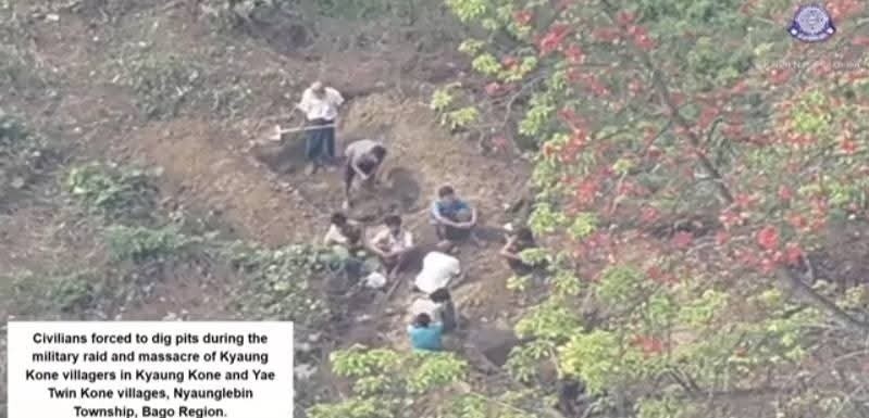 ပဲခူးတိုင်း၊ ညောင်လေးပင်မြို့နယ်၌ အရပ်သားများ အစုလိုက်အပြုံလိုက် သတ်ဖြတ်ခံရမှုကို စစ်ကော်မရှင်က “၎င်းတို့လုပ်ရပ် မဟုတ်ဟု” ဝါဒဖြန့်ငြင်းဆိုနေသော်လည်း ကြောက်လန့်ထွက်ပြေးသည့် သားဖြစ်သူအား သေနတ်ဖြင့် ပစ်သတ်သွားခဲ့ကြောင်း ဖမ်းဆီးလွတ်မြောက်လာသူ ဖခင်ဖြစ်သူ၏ ပြောပြချက်အရ သိရသည်။