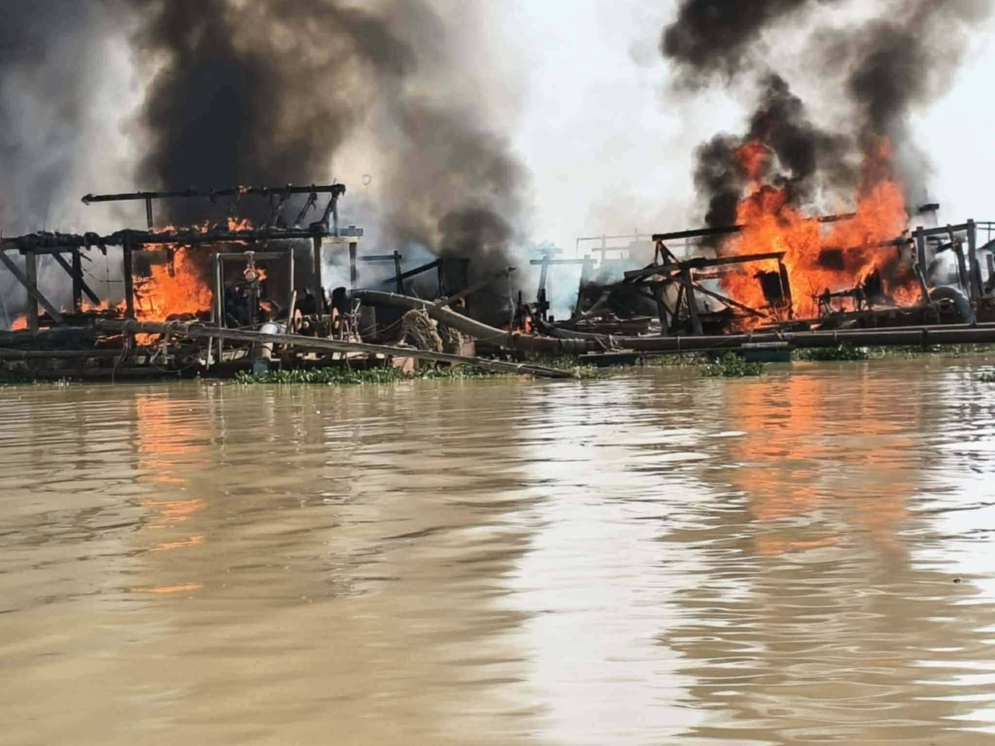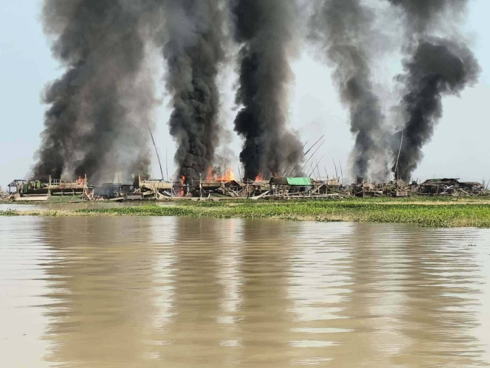 ဟုမ္မလင်းတက် ဂျက်ဖိုက်တာ နှစ်စင်းဖြင့် ယမန်နေ့ မတ် ၁၅ရက် မွန်းလွဲ ၃ နာရီ ခန့်က ဗုံးကြဲ တိုက်ခိုက်ခဲ့သည့်အတွက် ရွှေမျှောဖောင်များထိမှန်ပြီး မီးလောင်ပေါက်ကွဲခဲ့ကြောင်း ဒေသတွင်း သတင်းရင်းမြစ်များထံမှ သိရသည်။