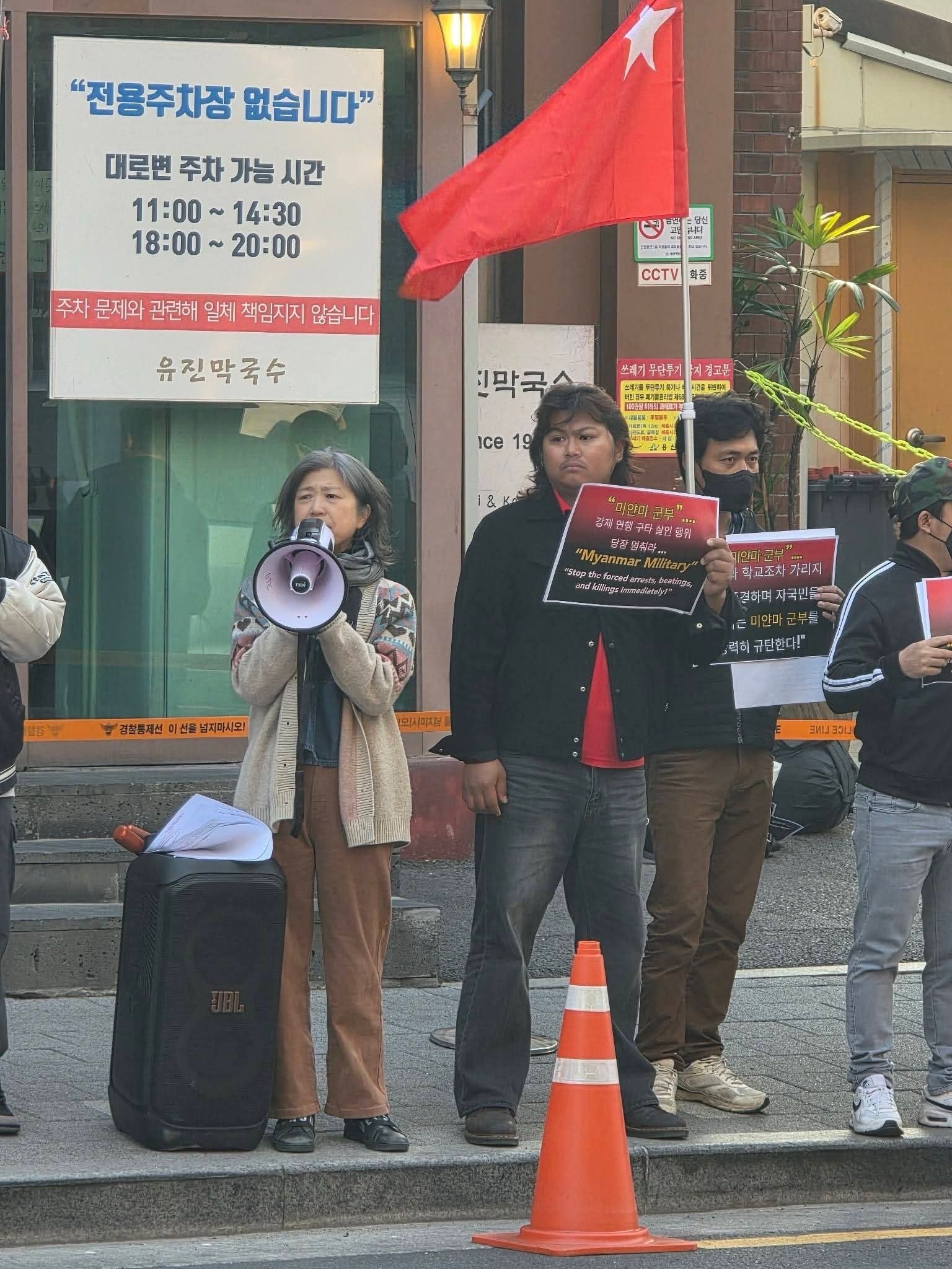 တောင်ကိုရီးယားရောက် မြန်မာ့နွေဦးတော်လှန်ရေးအင်အားစုများက ယမန်နေ့မတ် ၂၆ ရက်နေ့ ညနေပိုင်းတွင် ဆိုးလ်မြို့တွင်ကျင်းပသည့် စစ်ကော်မရှင်၏ ‘တပ်မတော်နေ့ဂုဏ်ပြုညစာစားပွဲ’ ပြုလုပ်ခြင်းကို ဆန့်ကျင်ဆန္ဒပြခဲ့ကြကြောင်း သိရသည်။