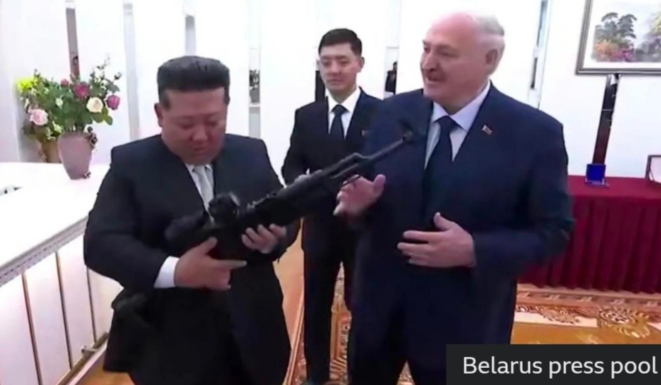 ဘီလာရုစ်သမ္မတ အလက်ဇန္ဒားလူကာရှန်ကိုဟာ မြောက်ကိုရီးယားခေါင်းဆောင် ကင်ဂျုံအန်နဲ့ ပြုံယမ်းမြို့မှာ ချစ်ကြည်ရေးစာချုပ် လက်မှတ်ရေးထိုးစဉ် ရိုင်ဖယ်သေနတ်တစ်လက် လက်ဆောင်ပေးခဲ့ တယ်လို့ နိုင်ငံပိုင်မီဒီယာတွေက ဖော်ပြပါတယ်။