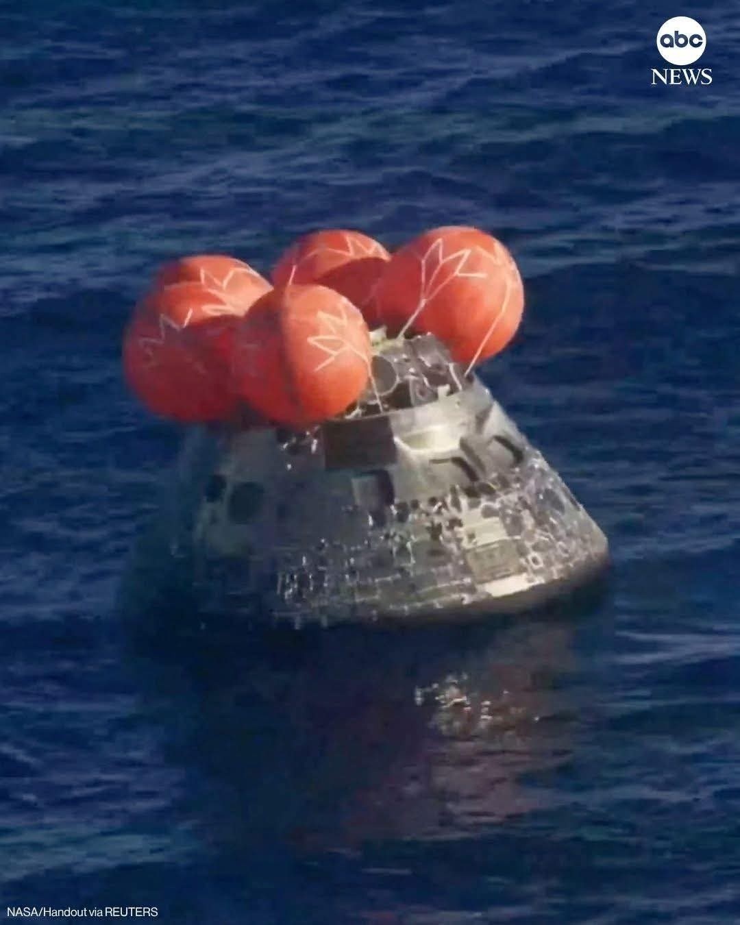 အာကာသယာဉ်မှူးများစီးနင်းလာသော အိုရိုင်ယွန် (Orion) အာကာသယာဉ်သည် သောကြာနေ့ညပိုင်းတွင် ဆန်ဒီယေဂိုမြို့အနီးရှိ ပစိဖိတ်သမုဒ္ဒရာအတွင်းသို့ အောင်မြင်စွာ ဆင်းသက်နိုင်ခဲ့ခြင်းဖြစ်သည်။