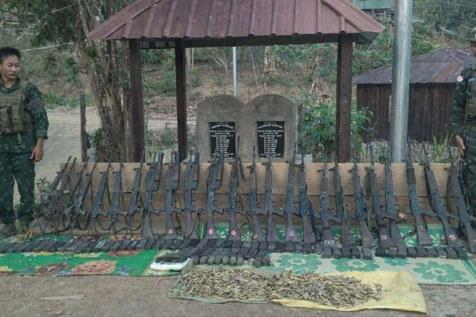 ပုံစာ – ချင်းတော်လှန်ရေးပူးပေါင်းတပ်က သိမ်းဆည်းရမိသော လက်နက်ခဲယမ်းအချို့။
