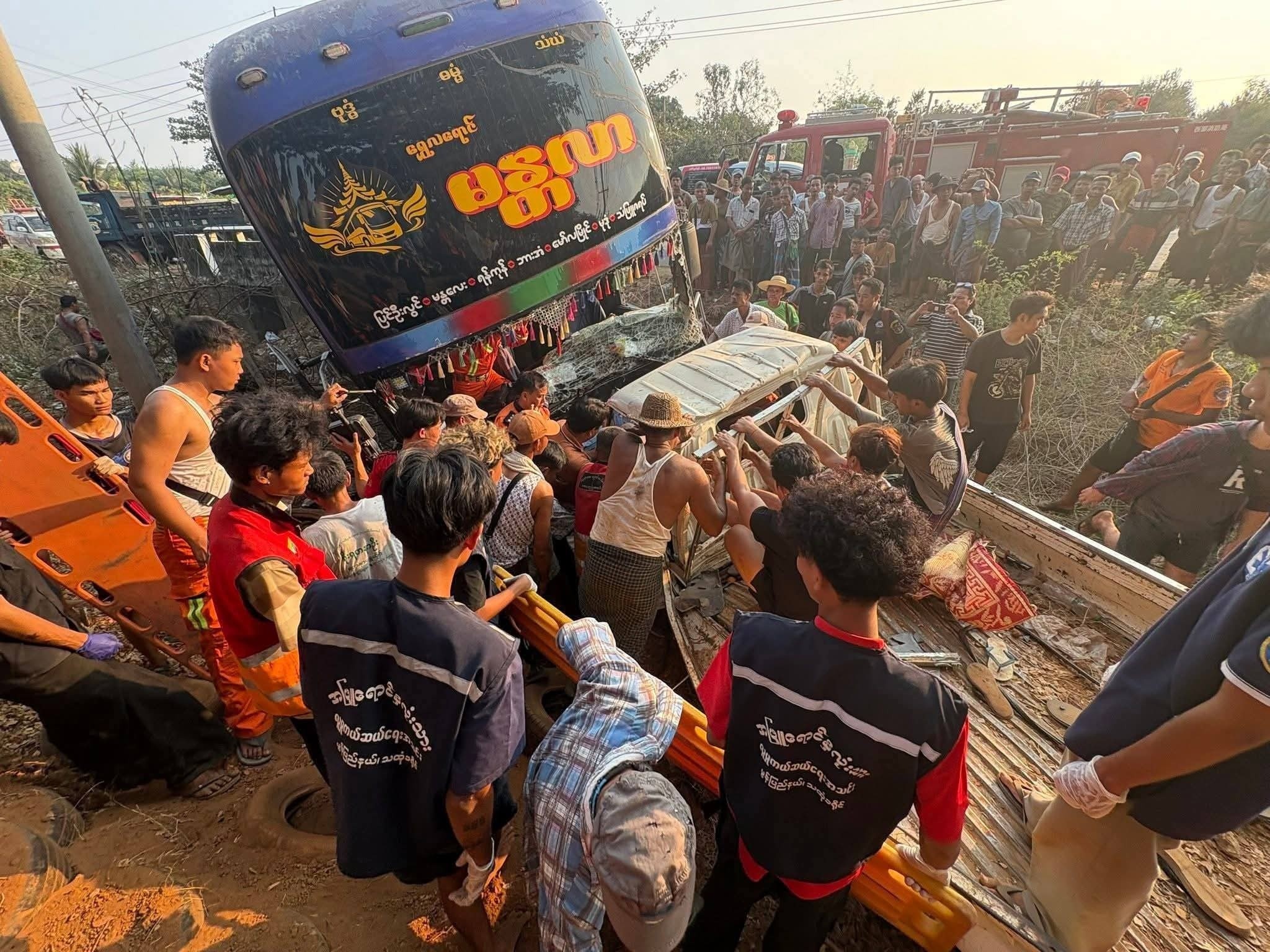 မန္တလာအဝေးပြေးခရီးသည်ယာဉ်နှင့် သံဃာတော်များ၊ ကိုရင်နှင့် လူပုဂ္ဂိုလ်များလိုက်ပါလာသည့် light truck ယာဉ်တိုက်မှုတွင် အခြားယာဉ်များထိခိုက်ပျက်စီးသွားကြောင်းသိရသည်။