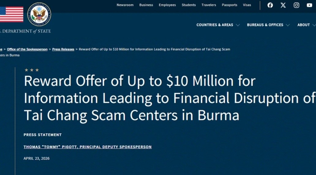 Ref; Reward Offer of Up to $10 Million for Information Leading to Financial Disruption of Tai Chang Scam Centers in Burma