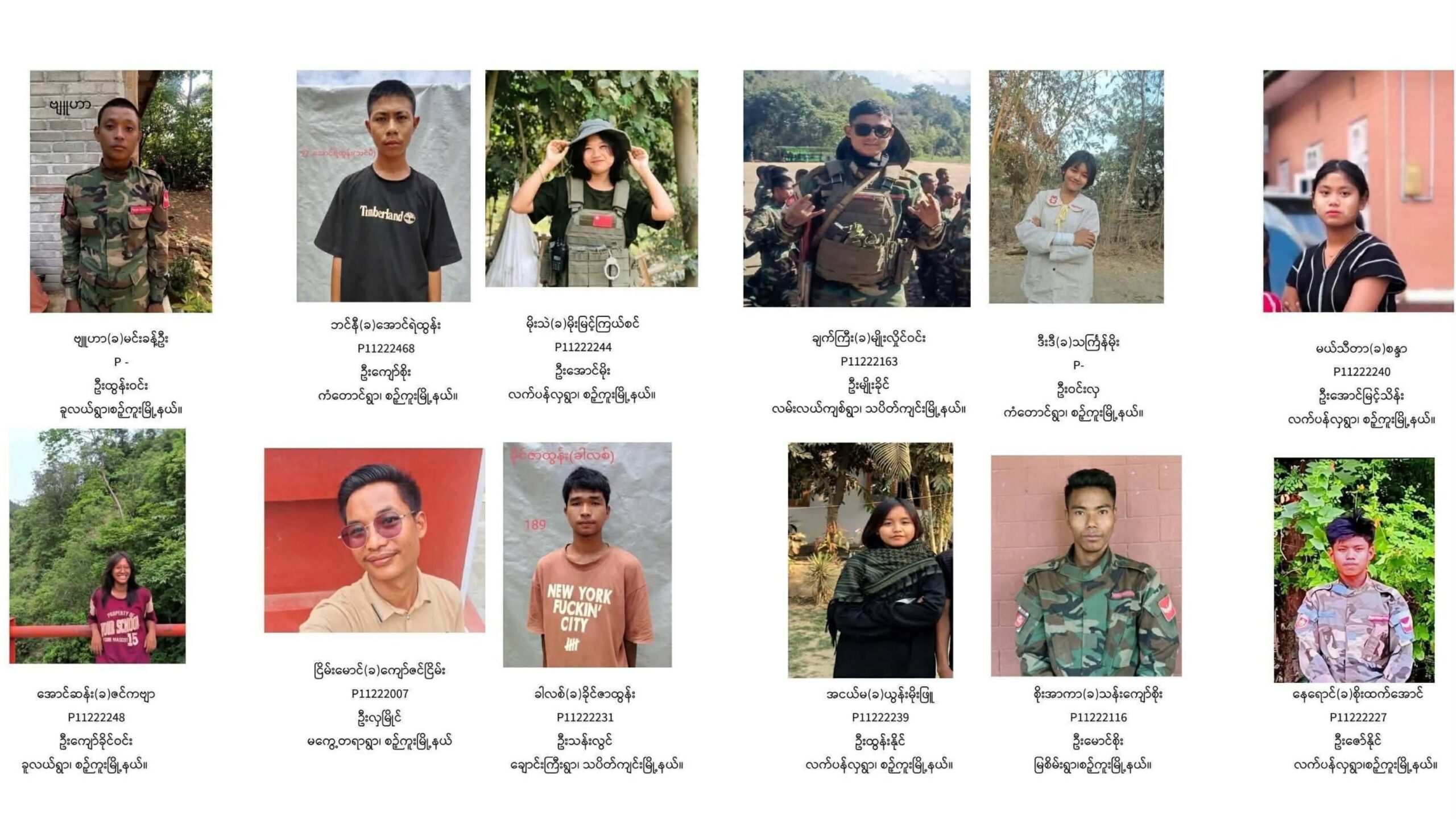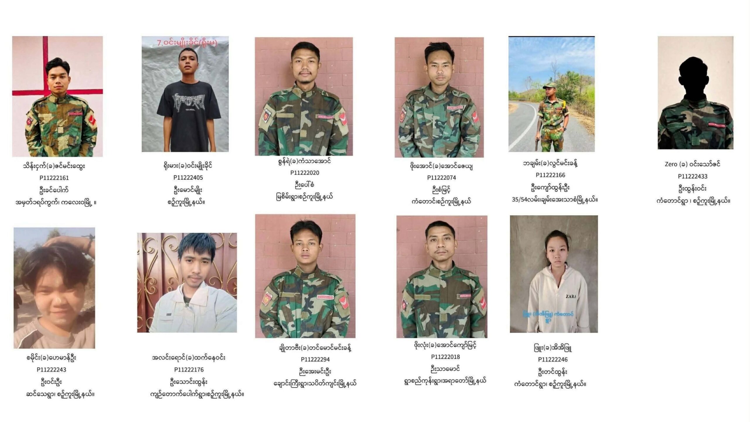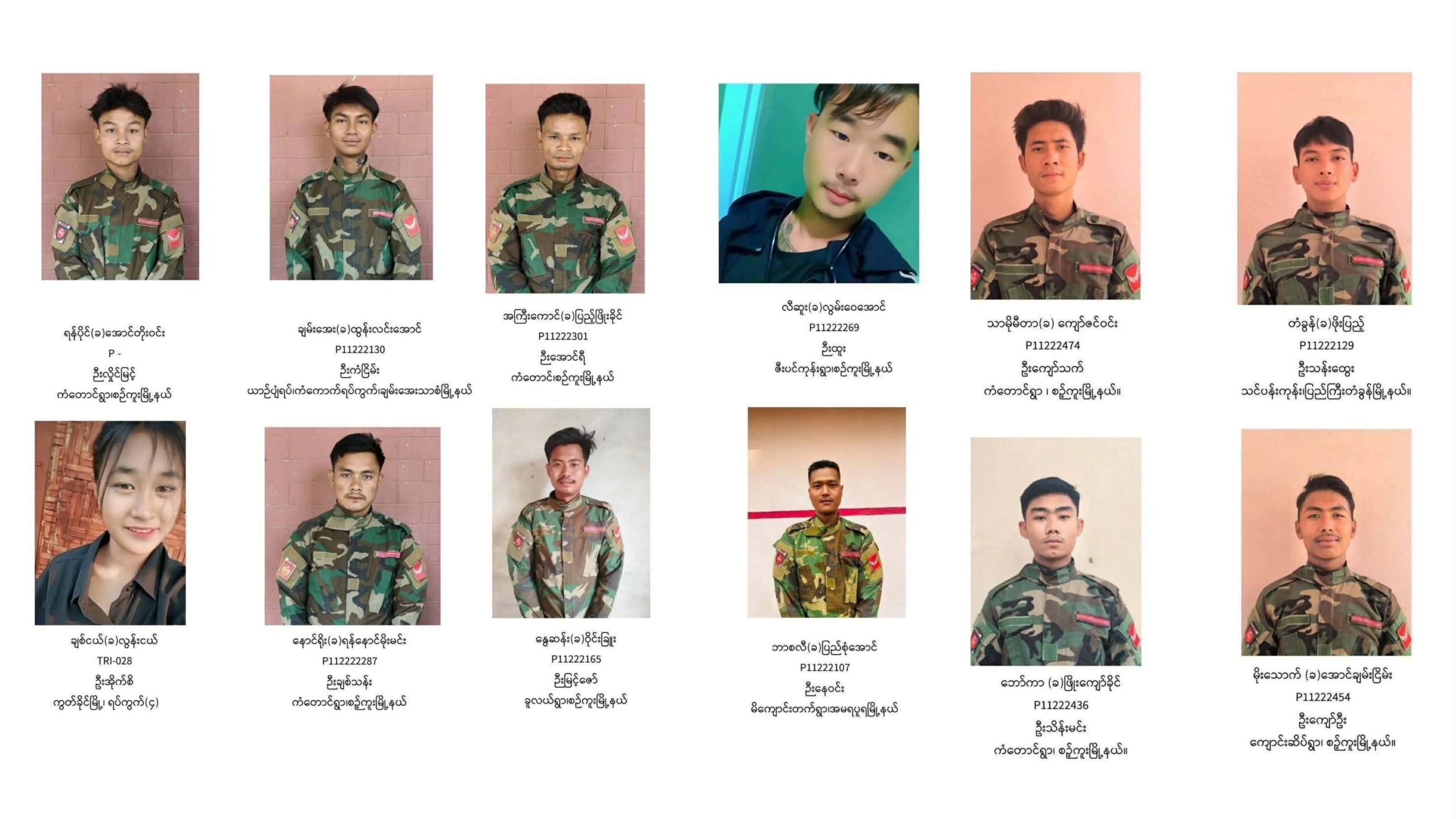 အမျိုးသားညီညွတ်ရေးအစိုးရ (NUG)၊ ကာကွယ်ရေးဝန်ကြီးဌာန (MOD) ၏ ကွပ်ကဲမှုအောက်ရှိ TRI (ထရိုင်) ဗျူဟာသည် တပ်မှ ထုတ်ပယ်ခြင်းနှင့် အမည်ပျက်စာရင်းသွင်းခြင်းအဖြစ် အမျိုးသမီး ရှစ် ဦး အပါအဝင် ရဲဘော် ၃၅ ဦး၏ ဓာတ်ပုံ၊ အမည်၊ မိဘအမည်နှင့် လိပ်စာတို့ကို ဧပြီ ၂၇ ရက်တွင် အတိအကျ ထုတ်ပြန်ခဲ့သည်။