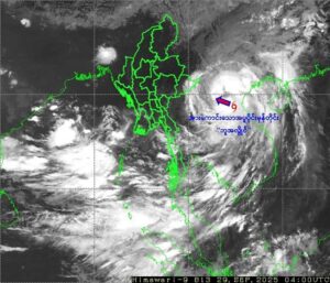 ဧရာဝတီတိုင်းမ် စက်တင်ဘာ ၂၉ ရက် လက်ရှိတွင် ဗီယက်နမ်နိုင်ငံကုန်းတွင်းပိုင်းသို့ ရောက်ရှိ နေသောအပူပိုင်းမုန်တိုင်း “ဘူအလွိုင်” ၏ လက်ကျန် လေဖိအားနည်းရပ်ဝန်းသည် စက်တင်ဘာ...